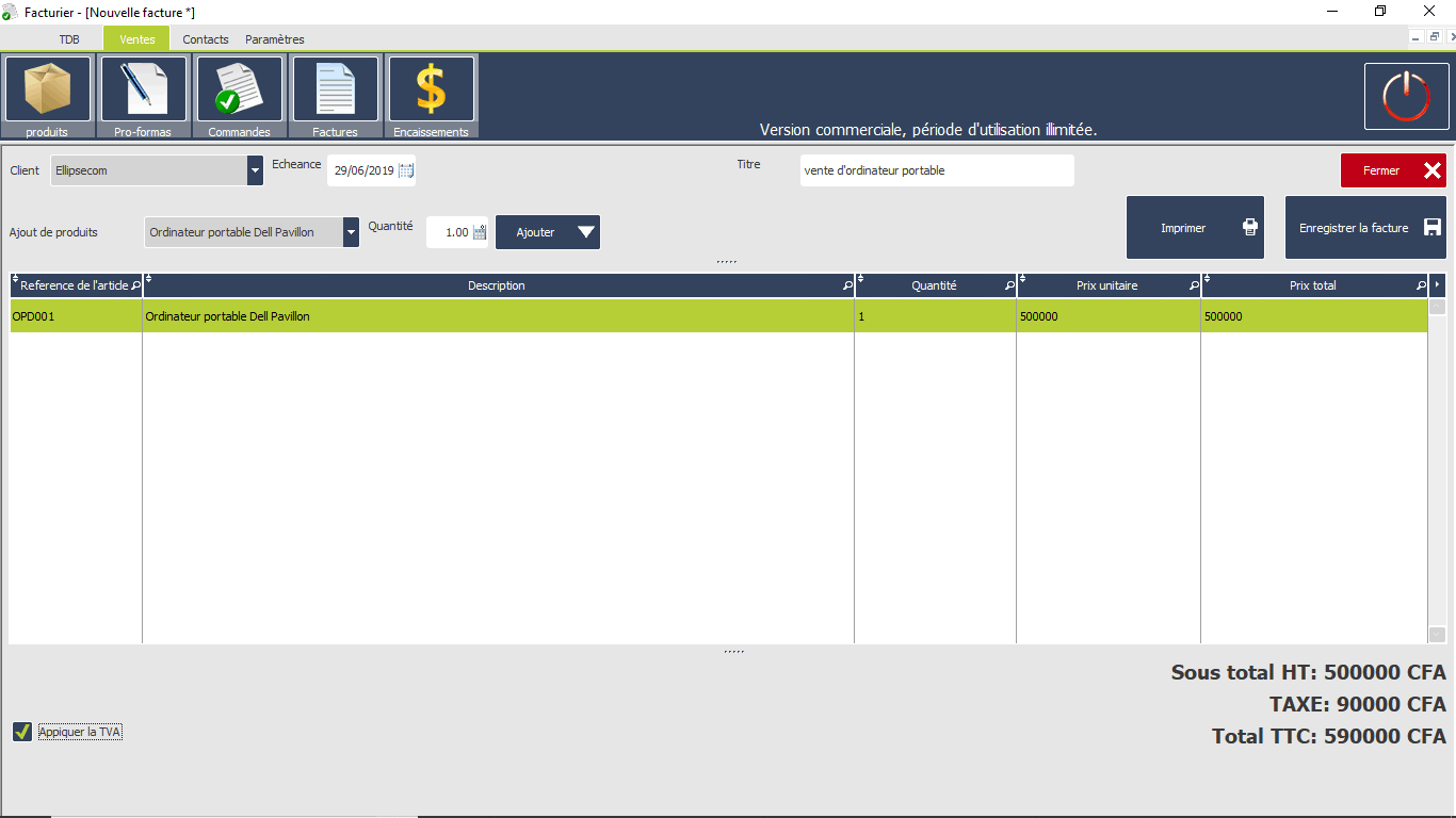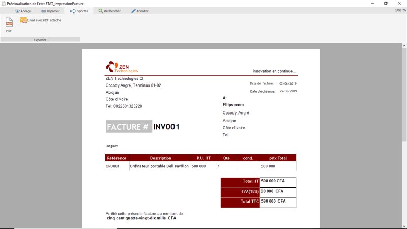 Imprimez tous vos documents commerciaux aux couleurs et logo de votre société (Factures, bons de commandes, factures pro forma)